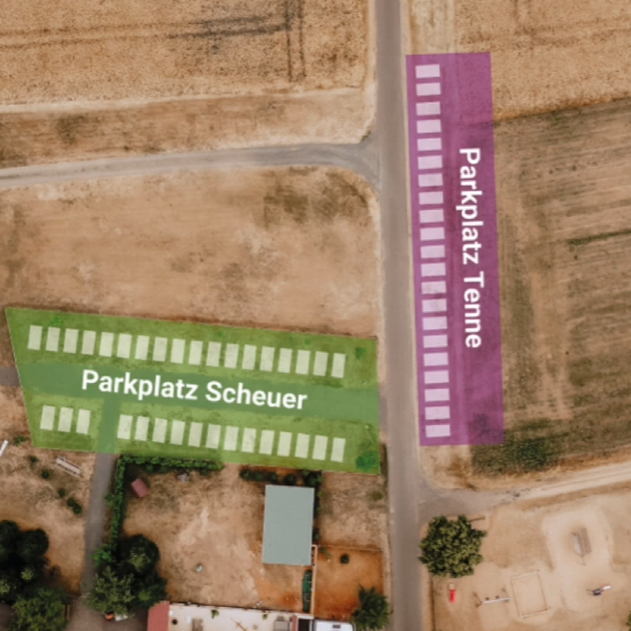Die Parkplätze befinden sich hinter der Location auf der rechten Seite (hinter dem Spielplatz).
